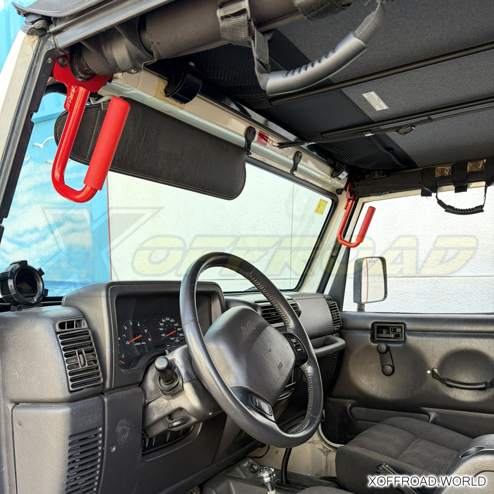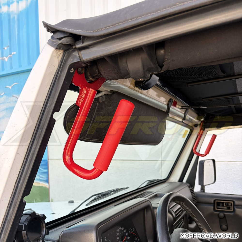 Håndtagene er fremstillet af aluminium i høj kvalitet. Maleri i rød farve. En perfekt tilføjelse til din offroad-Jeep, som gør det nemt at komme ind i løftede Jeeps og være sikker indeni, når du kører i ujævnt terræn. Sælges som par.