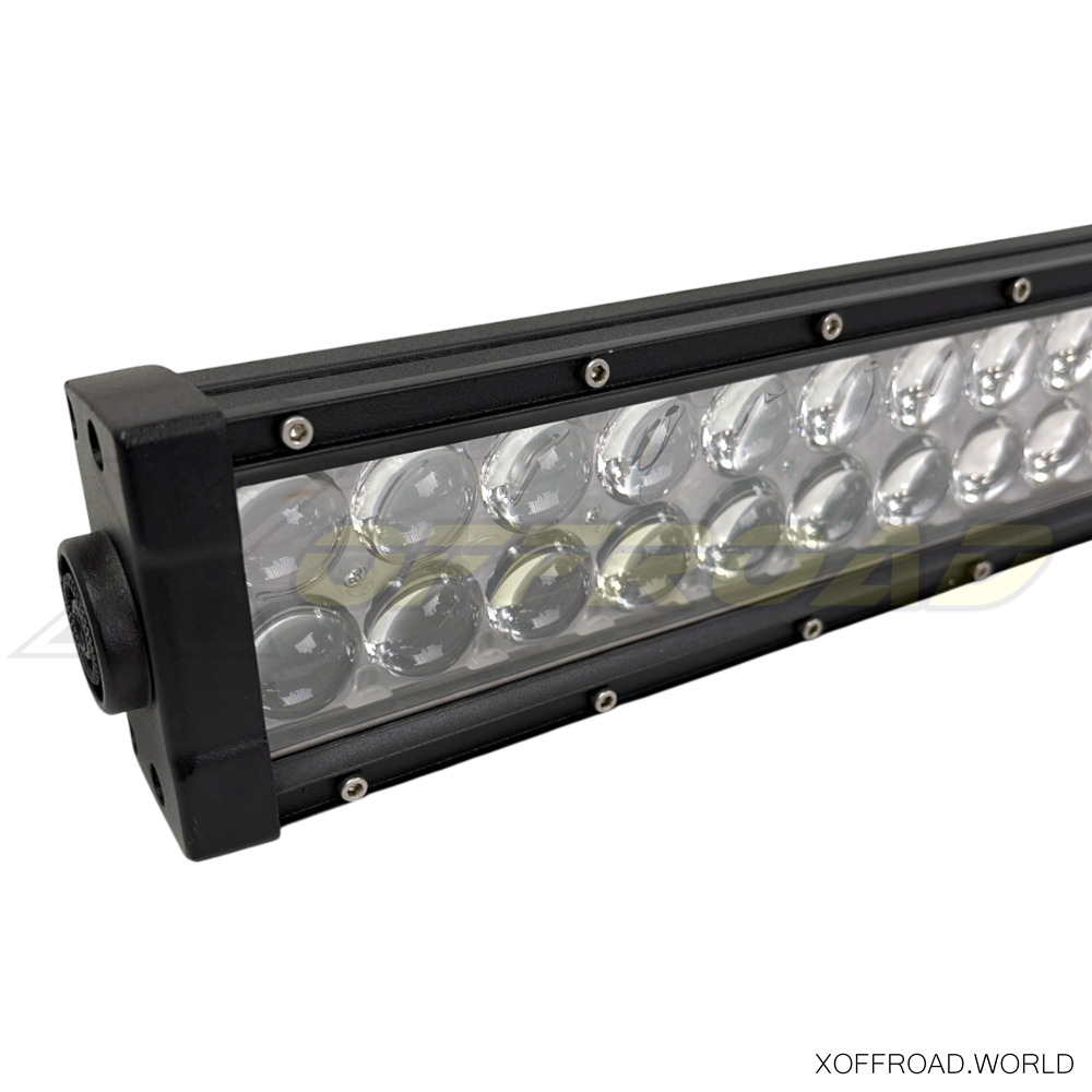 X-Offroad præsenterer en ny serie LED-lysbjælker uden skruer i frontskjoldet til en uovertruffen pris. Lys stierne op om natten med en helt ny X-Offroad LED-lysbjælke. Dobbelt række af LED. Denne bar har LED-chips med lang levetid og høj intensitet, så du ikke bliver efterladt i mørket selv på de mørkeste nætter. LED-lysbjælken leveres med 4D-linser for den bedste spredning af lyset. Denne lysbjælke er indkapslet i et sort pulverlakeret hus af trykstøbt aluminium og er IP67-vandtæt for at give uovertruffen ydeevne i al slags vejr. Uden ledninger, skal købes separat.
