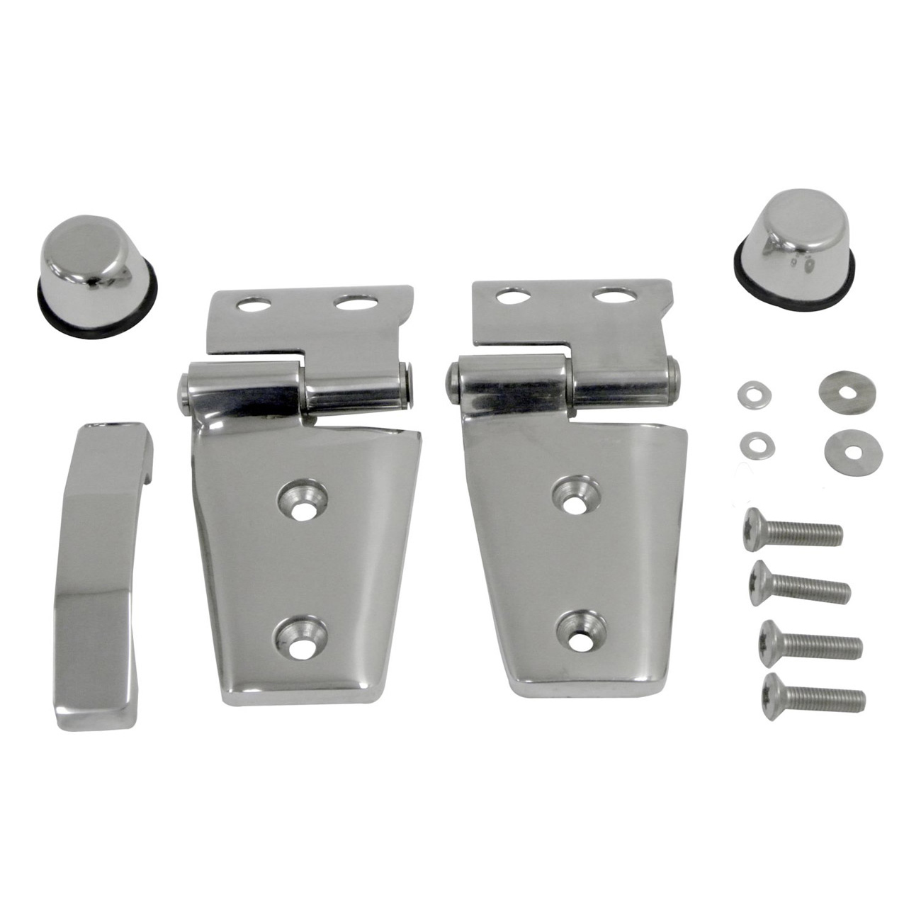• Inkluderer: 2 Hinges, 2 Hood Stops (Windshield Bumpers) and 2 Footman Loops